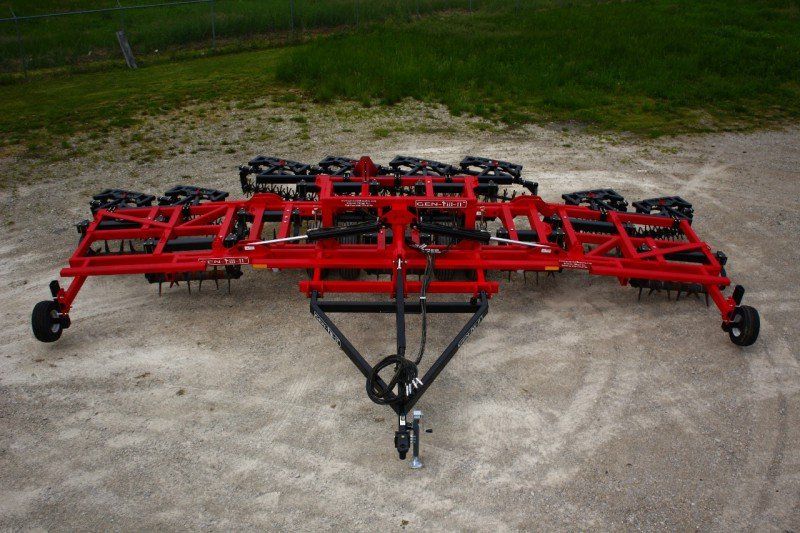 Genesis Tillage™ is happy to announce the GenTill™ 4 Machine which features a 30’- 45’ Genesis Tillage™ Aerator with the wheels underneath for improved balance and performance. The GenTill™ 4 has a coulter system, wavy or straight, on the front of the machine to size material and a Genesis Tillage™ Rotary Harrow to level the ground and help prepare the ideal seed bed.